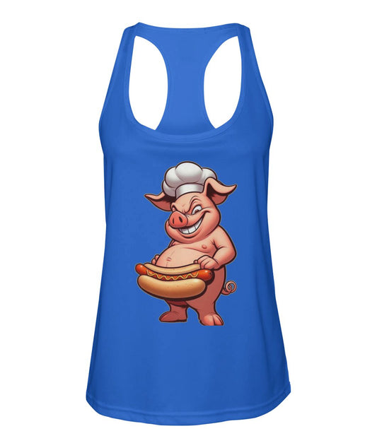Chef Pig Hotdog (TankTop & More) Women's Racerback Sport Tank